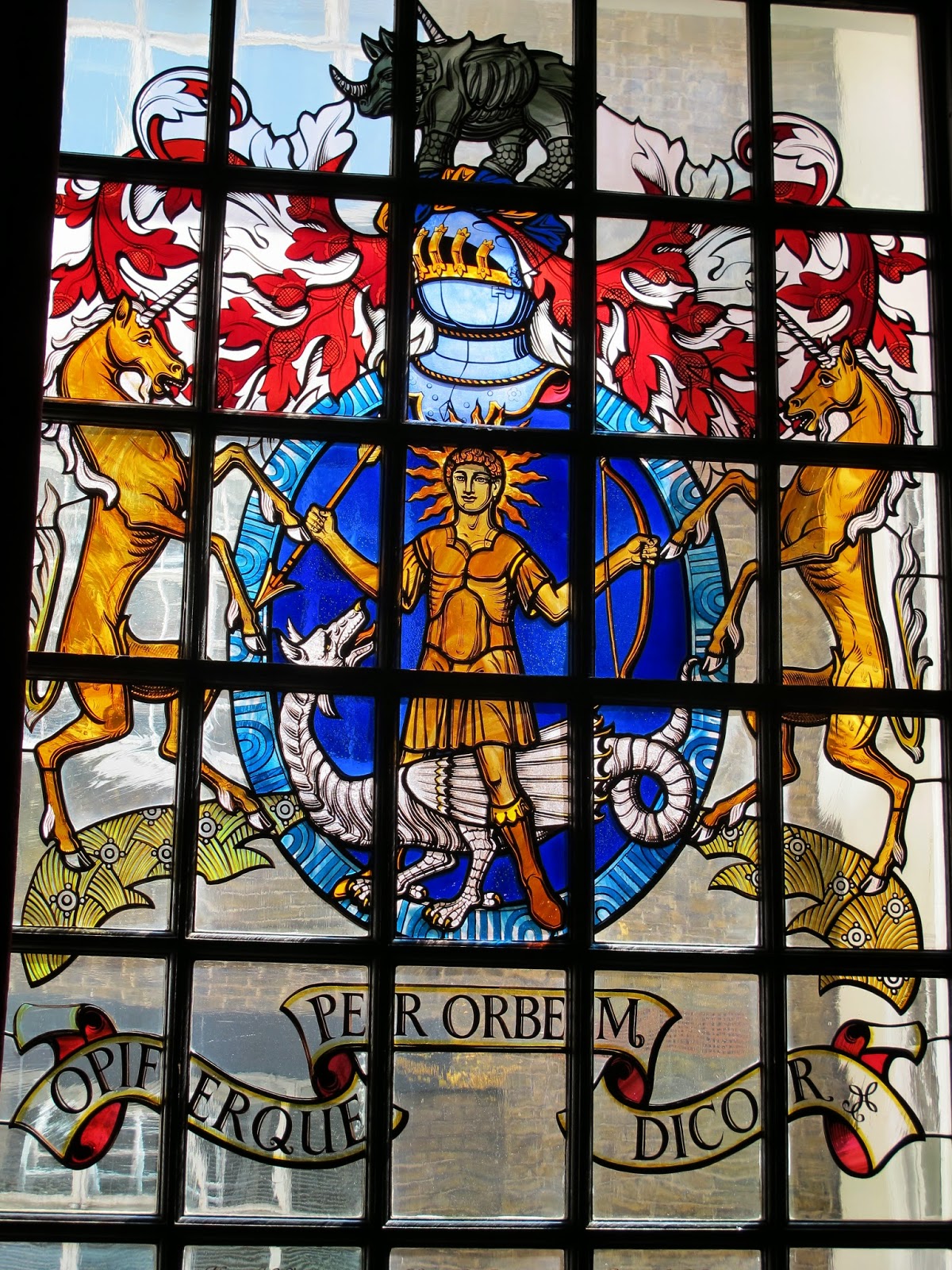 To each side is a unicorn, James I's special beasts which highlights his personal interest in the Society.